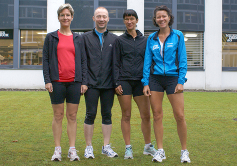 | Privates Runplus Lauftraining in Dättwil, 29. August 2010 Von links nach rechts: Marianne, Joseph, Michèle, Moni |