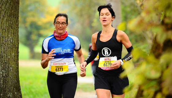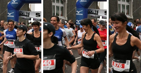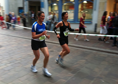 | 24. April 2010 (Homepage) Marathon4you (Laufbericht) Zieleinlauf Annegret Schneider und Michèle Schmid (v.r.n.l) |